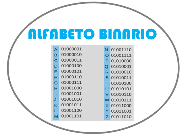 También se codifican las letras del alfabeto a código binario, y el equivalente aceptado es el siguiente (no es necesario aprenderlo de memoria):